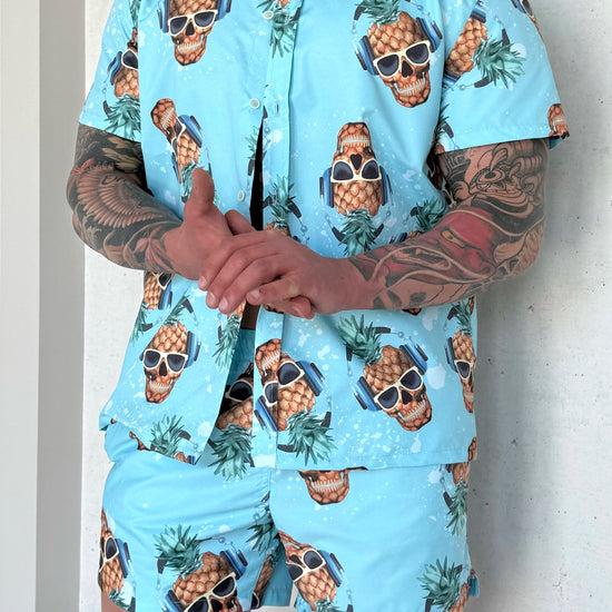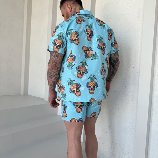 Men’s Beach Set Pineapple Skulls – Sky Blue