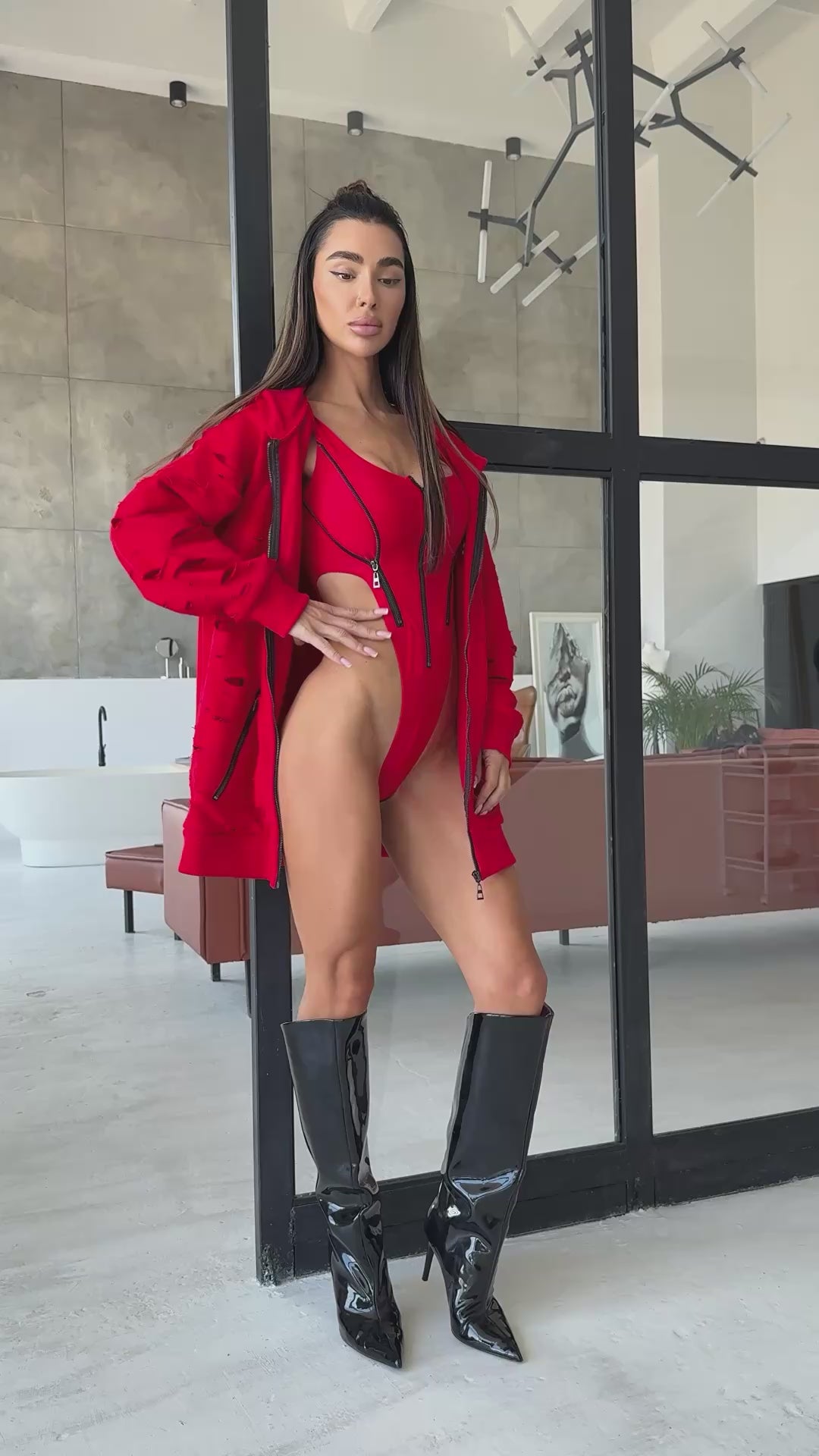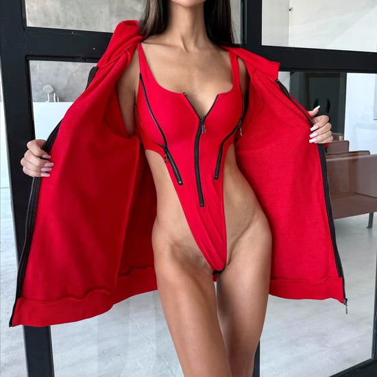 Bold, comfortable, and undeniably stylish — meet DESTRA, the red zip hoodie by KRUTYAKOV. Designed for confident women who love handmade streetwear with a designer edge.