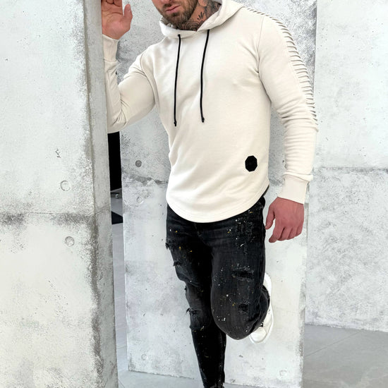 KRUTYAKOV Men’s Hoodie RELIEF 3 (Light Beige) is clean, modern streetwear with a designer silhouette — minimal, structured, and easy to wear daily. The signature asymmetric hem and textured sleeve details add depth and character while keeping the overall look sleek and premium.