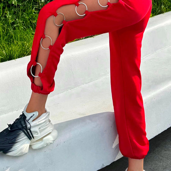 Bring fire to your streetwear game — the FIVE RINGS RED joggers blend sporty comfort with designer attitude. Handmade from a premium cotton blend, they’re soft, bold, and unapologetically stylish.