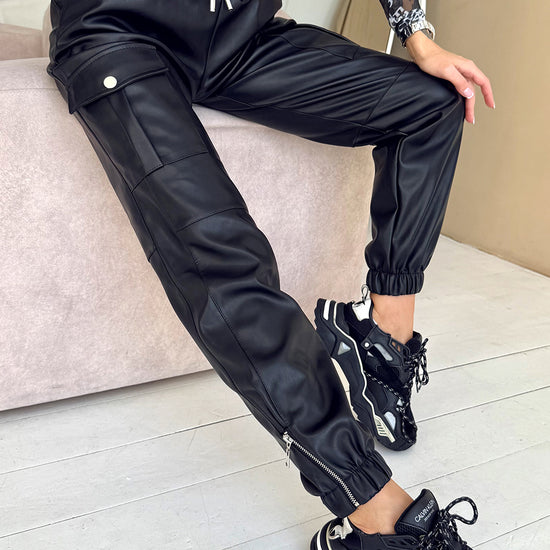 Women’s Nicole Joggers Faux Leather Zip — Black