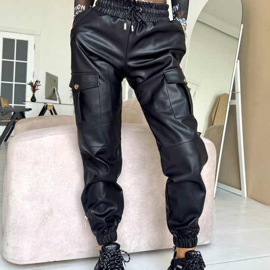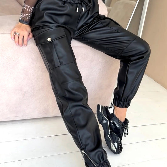 These women’s faux leather joggers bring a sporty yet luxurious vibe to any outfit. Crafted from smooth matte eco-leather, they feel soft to the touch, warm inside, and perfectly shaped for an elegant, confident silhouette.