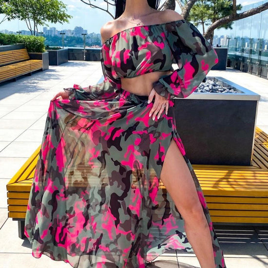This lightweight chiffon co-ord set instantly catches the eye with its designer pink camo print and feminine silhouette. The 3-piece set is easy to mix & match and packs perfectly into a suitcase, so you’re always ready for a stylish summer moment.