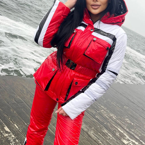 Bold slope style + real winter protection. This women’s ski outfit set is a matching ski jacket and pants set made for skiing, snowboarding, winter travel, and après-ski city looks — polished, warm, and unforgettable.