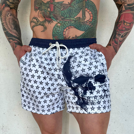Men’s Swimshorts Skull Stars – White