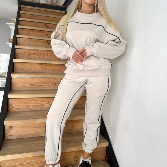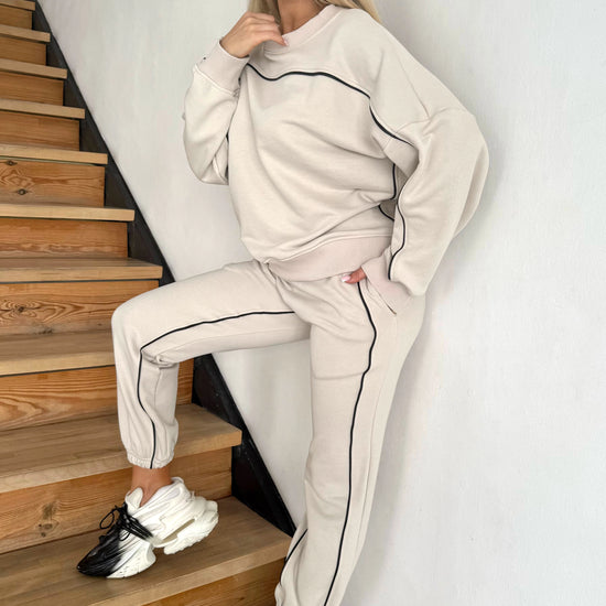 The Alexia Beige tracksuit blends warmth, elegance and versatility — a stylish essential for any modern wardrobe.