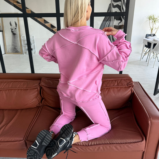 The reverse seam effect adds structure and creates a fashionable “raw edge” look, making the Inva Pink tracksuit stand out from classic lounge sets.