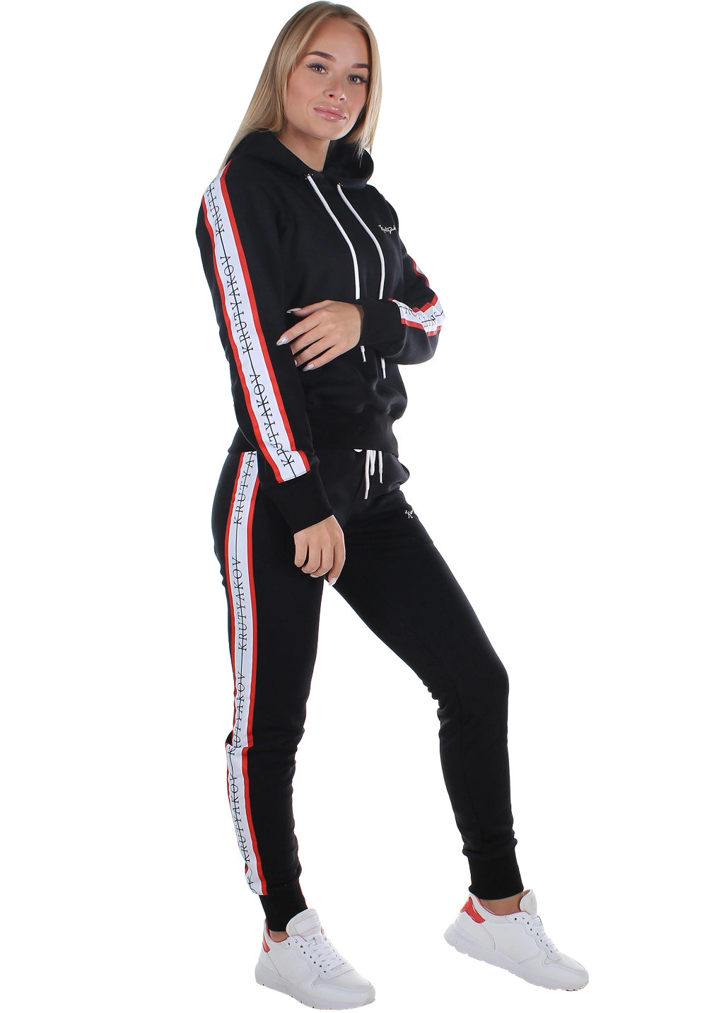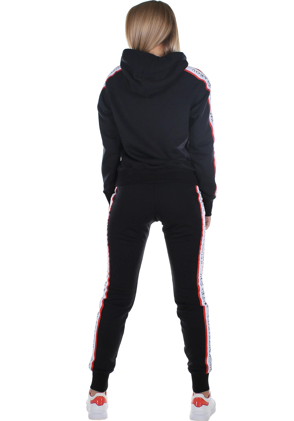The hoodie and joggers create a sporty silhouette, while the white-red branded lampas add a striking contrast. The fabric is soft inside, resilient outside and ideal for daily wear and active movement.