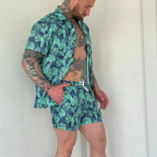 Step into summer with a bold, tropical-inspired two-piece outfit designed for beach days, vacations, pool parties and resort weekends. This men’s beach set features lightweight quick-dry fabric and a breathable mesh lining, ensuring all-day comfort even in hot, humid climates. The vibrant “Cocaine Cowboys” green print is eye-catching, unique and perfect for travel, holidays, festivals or casual summer looks.