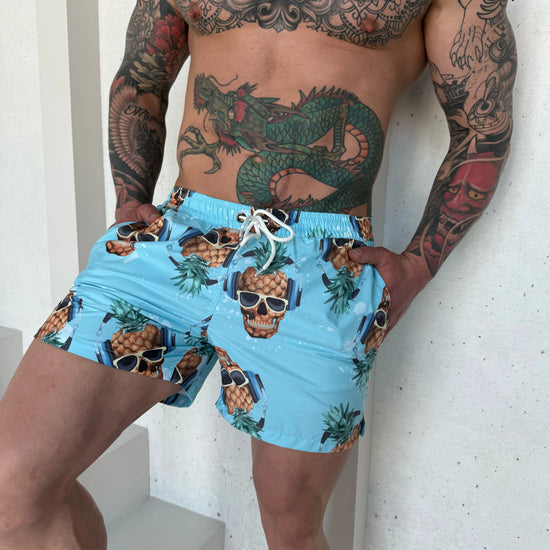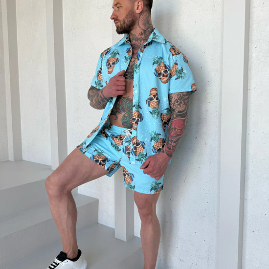 Men’s Beach Set Pineapple Skulls – Sky Blue