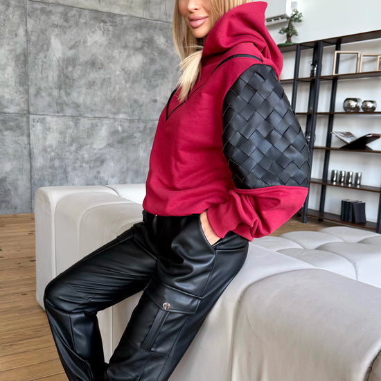 Women’s Designer Hoodie Leplex — Burgundy Leather Inserts