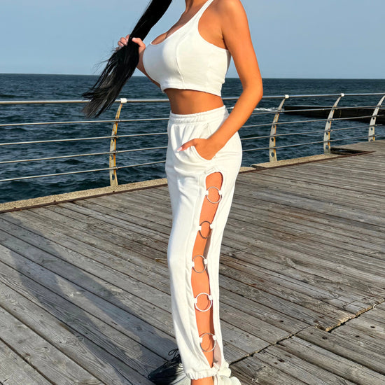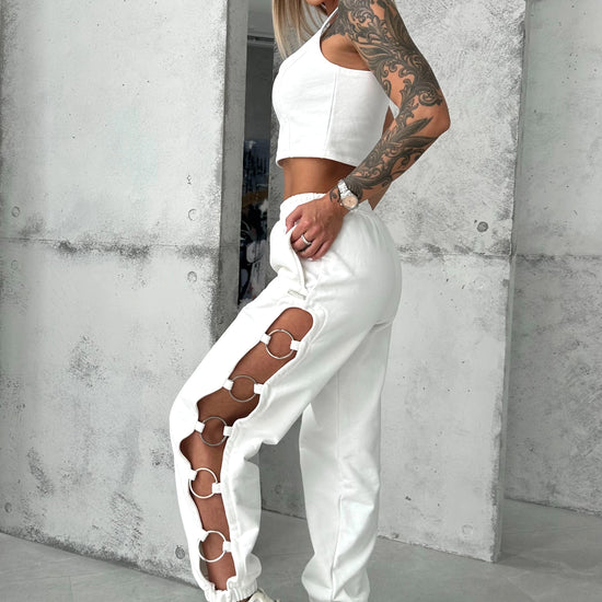 Women’s Cut-Out Joggers Five-Ring— White
