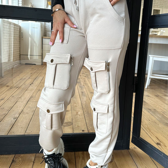 Women’s Knit Cargo Trousers Helen — Beige