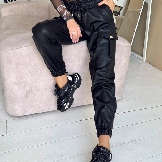 Women’s Nicole Joggers Faux Leather Zip — Black