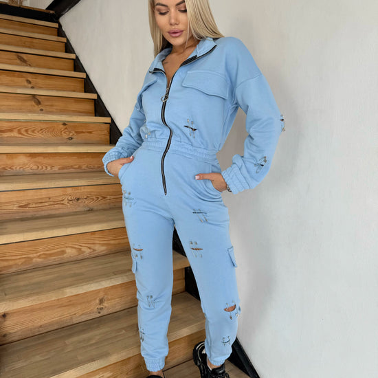 - Women’s sky blue cut-out jumpsuit