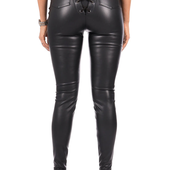 WOMEN’S LACE-UP FAUX LEATHER LEGGINGS DOMINGA — BLACK