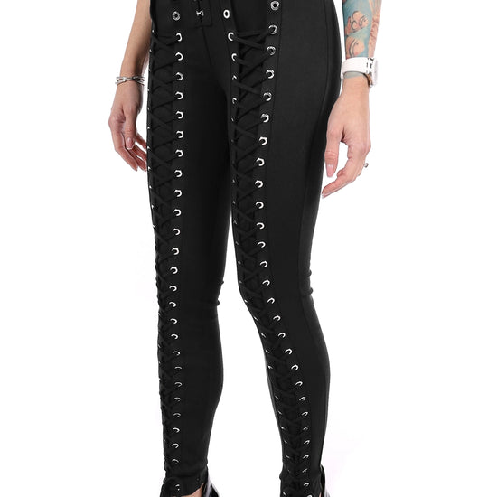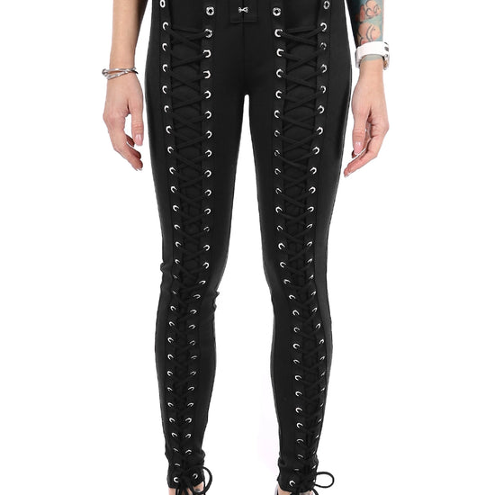 WOMEN’S FULL LACE-UP KNIT LEGGINGS MIRANDA — BLACK