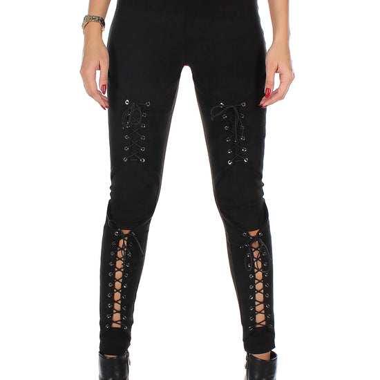 - Women’s black suede lace-up leggings