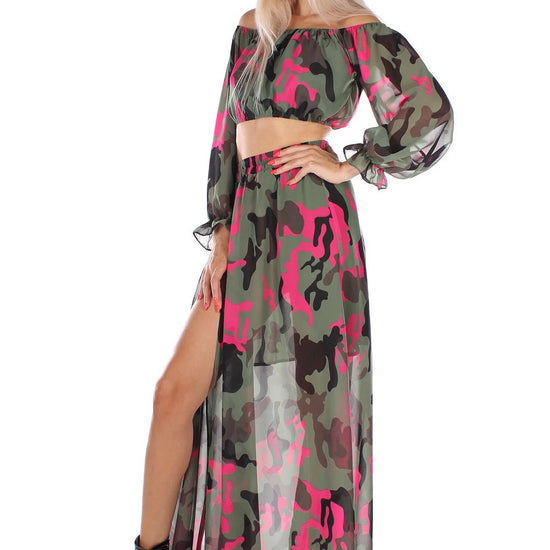 This lightweight chiffon co-ord set instantly catches the eye with its designer pink camo print and feminine silhouette. The 3-piece set is easy to mix & match and packs perfectly into a suitcase, so you’re always ready for a stylish summer moment.