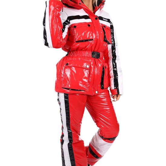 Red Glossy Ski Suit FREYA for Women by KRUTYAKOV — where bold style meets mountain performance.
