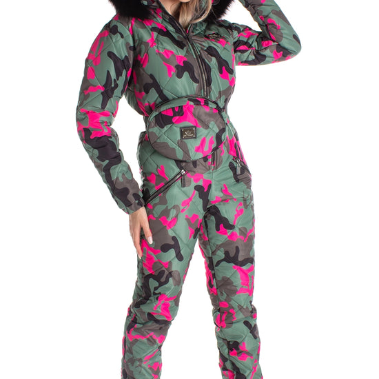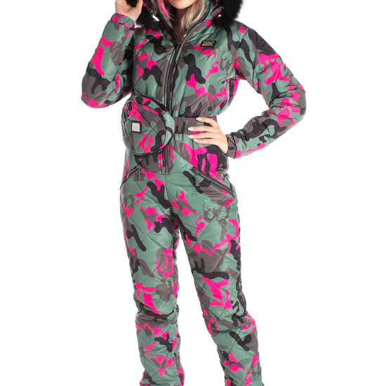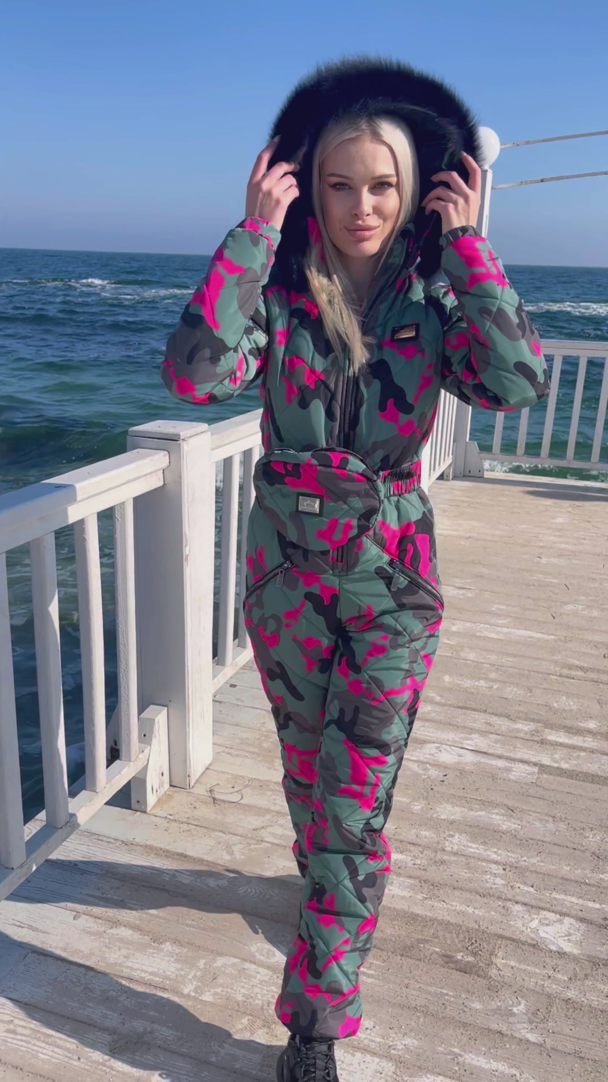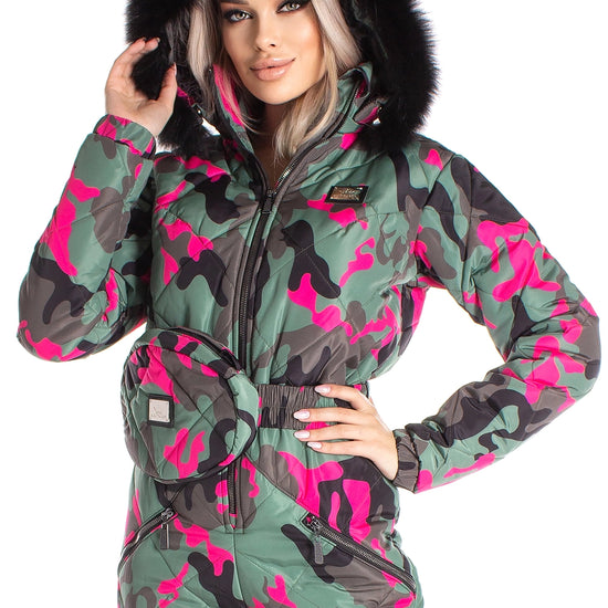 Women’s One Piece Ski Suit Vale — Multicolor Camo is a warm, insulated snowsuit crafted for winter sports and cold-weather city style. The vibrant camo print with pink accents creates a modern designer look, while the technical construction ensures comfort on the slopes and beyond.