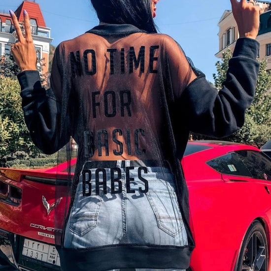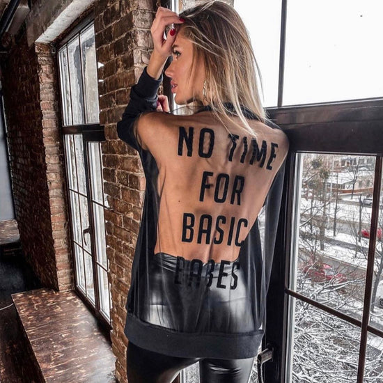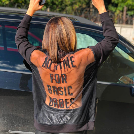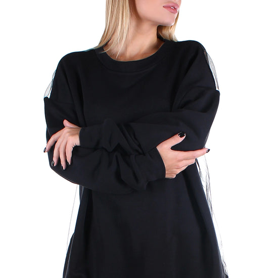 Women’s Sweatshirt Oversize Mesh Back — Basic Babes Black