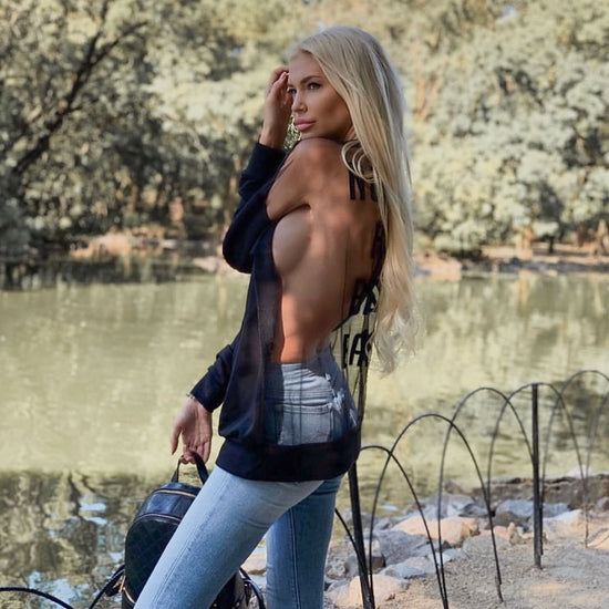 🔥 Discover the BASIC BABES Oversized Mesh Sweatshirt by KRUTYAKOV — handmade streetwear for women with a bold sheer-back twist. A perfect mix of comfort, art, and urban confidence 💥