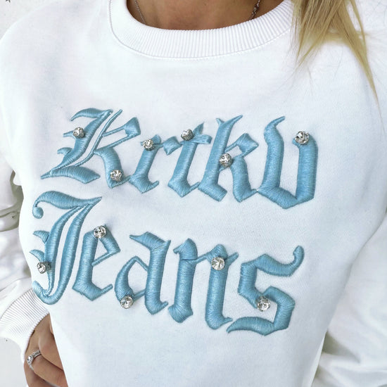 Women’s Sweatshirt 3D Embroidered Rhinestone — KRTKV Jeans White