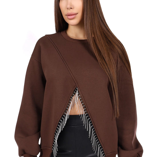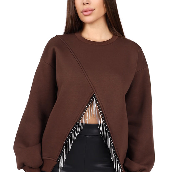Women’s Sweatshirt — Lina Crystal Fringe Brown