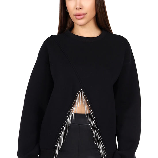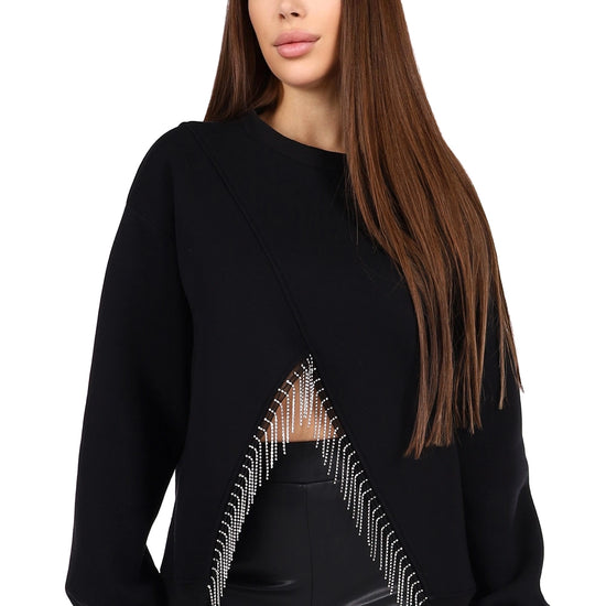Women’s Sweatshirt — Lina Crystal Fringe Black