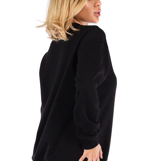 - Black women’s sweatshirt with dramatic cut-out neckline