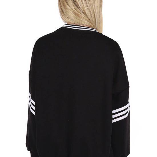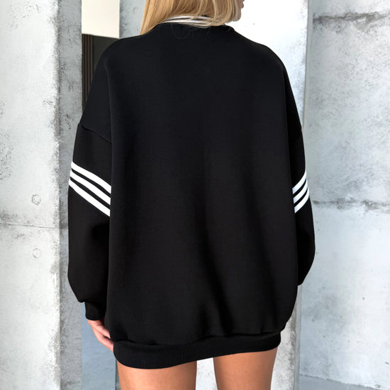 - Trendy oversized sweatshirt for women with a sporty college-inspired print