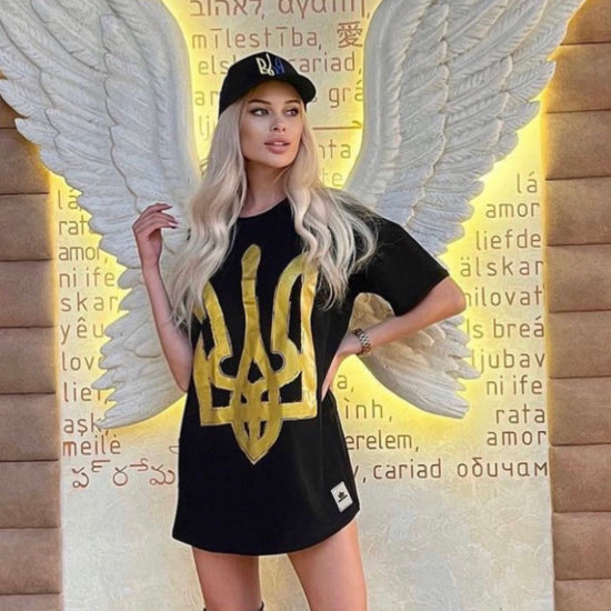 Women’s Oversize T-Shirt Ukrainian Emblem Black