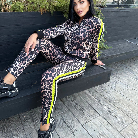 Women’s Leopard Print Tracksuit — Bruna Neon Stripes