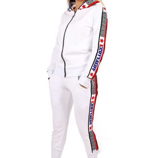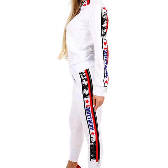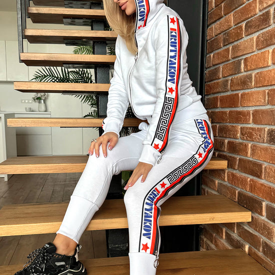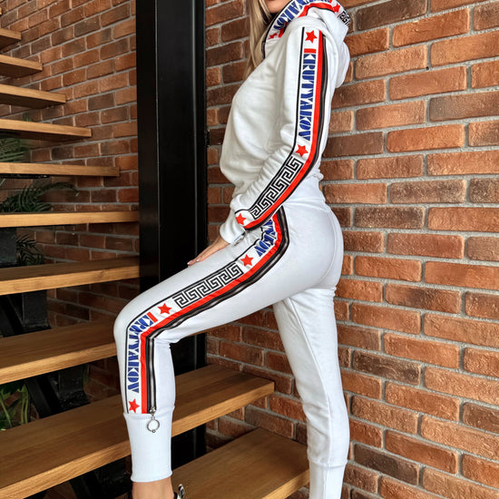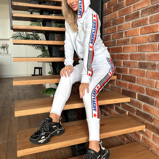 The Istra White tracksuit is a designer statement piece — fresh, stylish and perfect for modern women who love comfort and premium streetwear