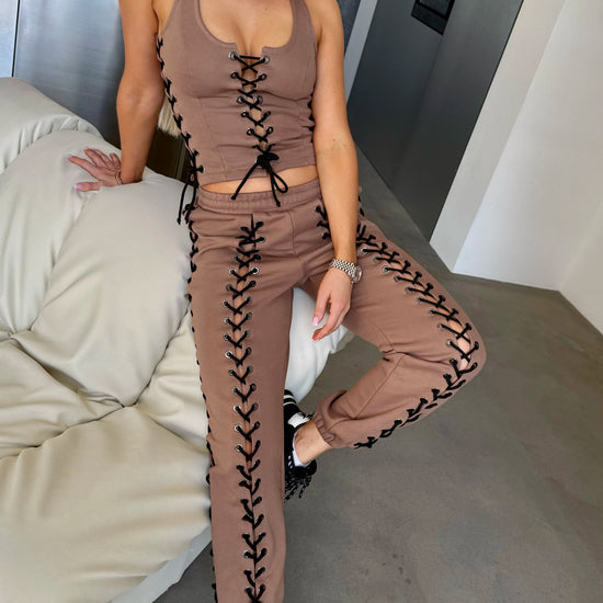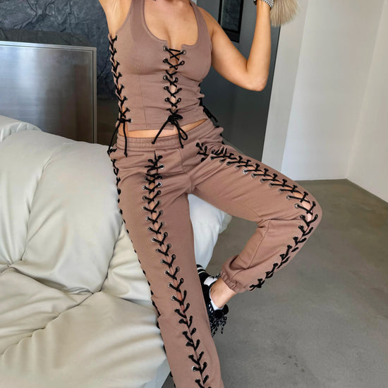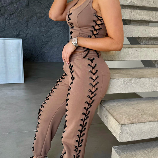 Women’s Beige Lace-Up Corset Tracksuit — Lacy Short