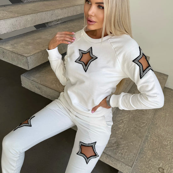 Women’s Beaded Tracksuit – Stars White
