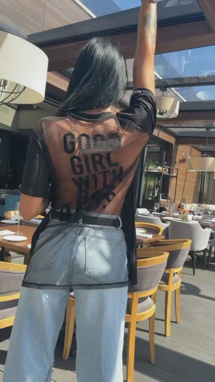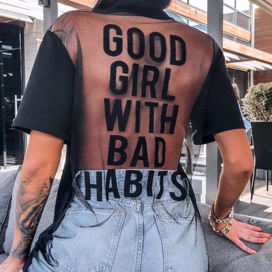 Women’s Bad Habits Mesh Chain T-Shirt Black