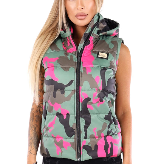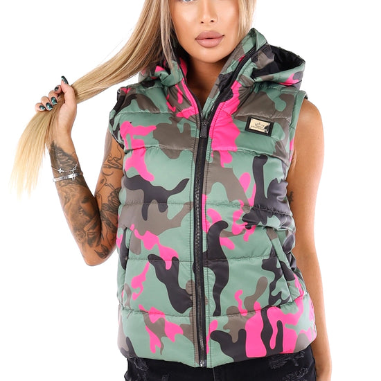 Women’s Camouflage Puffer Vest Vale Classic Pink Camo