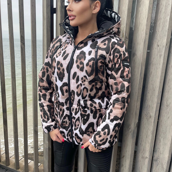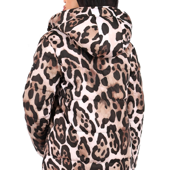 • All-over leopard-print winter puffer jacket