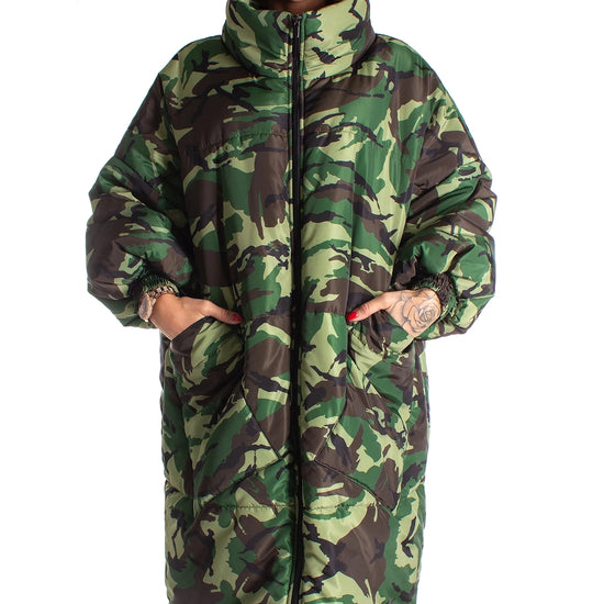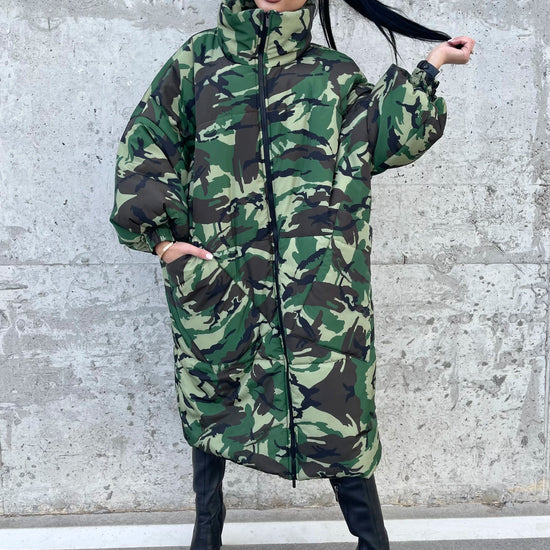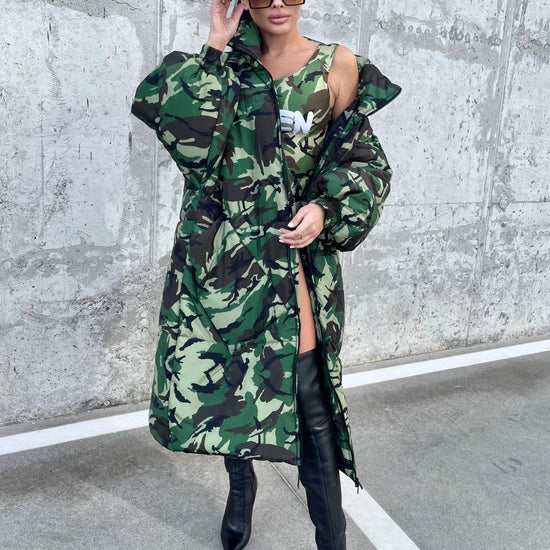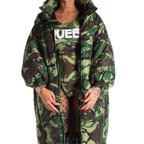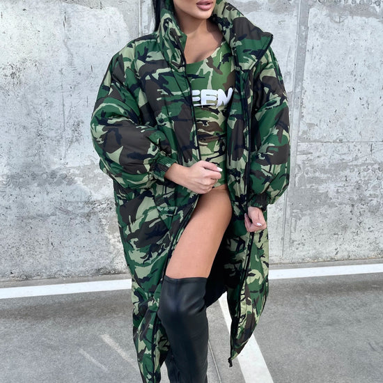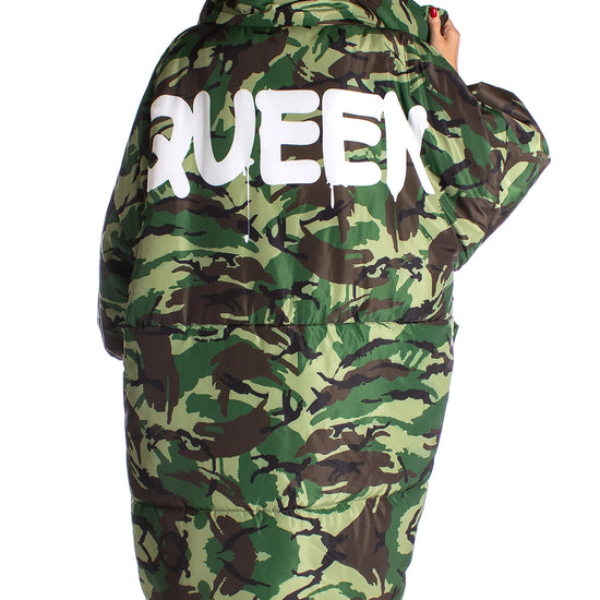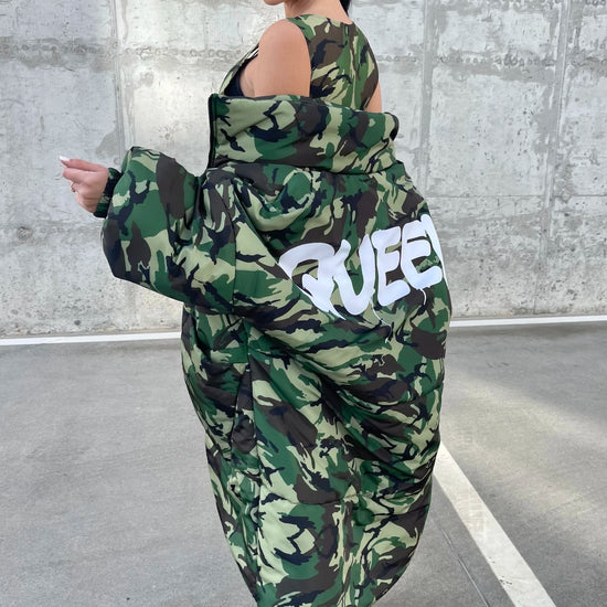 Women’s Oversized Winter Puffer Coat – Camo Queen